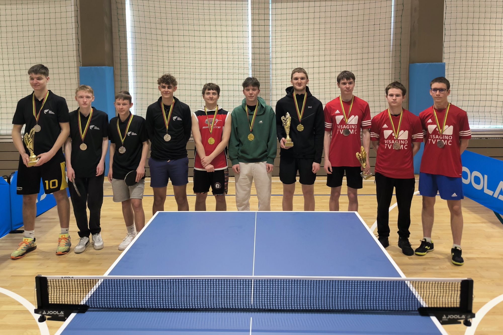 Vaikinų tarpe nugalėtojais tapo Kauno technologijų mokymo centro vaikinai, II vieta – Šiaulių technologijų mokymo centro sportininkams, III vieta – Visagino technologijos ir verslo profesinio mokymo centro tenisininkams.
