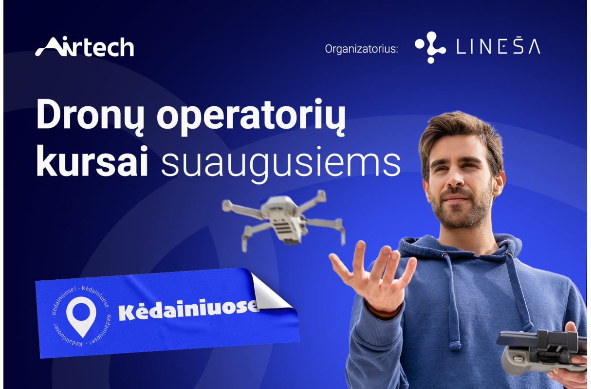Lietuvos neformaliojo švietimo agentūros (LINEŠA) Airtech skyrius pristato naują FPV (First Person View) bepiločių orlaivių pilotavimo programą, skirtą suaugusiems. Kėdainiuose vyksiantys mokymai orientuoti į šiuolaikinių technologijų populiarinimą bei praktinių ir teorinių įgūdžių suteikimą tiems, kurie siekia pažinti dronų pasaulį iš arti.